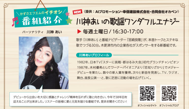 Media 川神あいの歌謡ワンダフルエナジー(かずさエフエム)10/4.satスタート