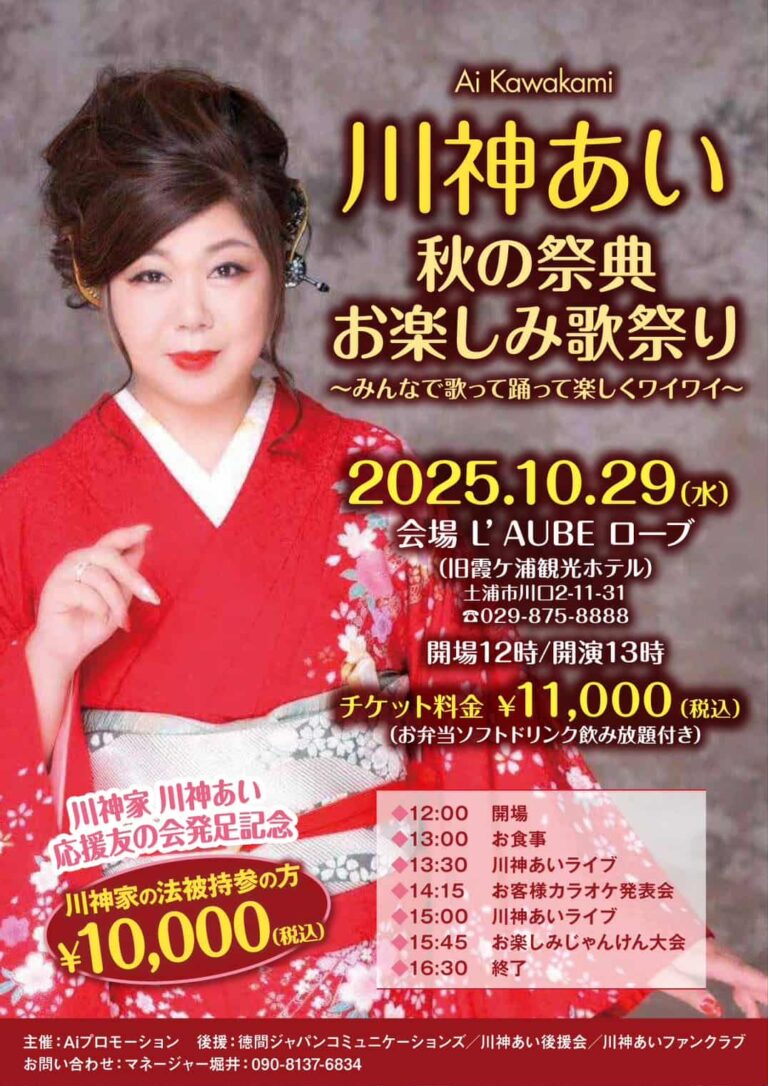 Event 10/29 水曜日 川神あい・秋の祭典お楽しみ歌祭り